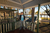 We continued on driving along the Murray Valley Highway and turned off at the sign going to a Historic Trestle Bridge, once part of the Cudgewa Railway Line. It was already fenced due to safety reason... However, my two boys, naughty as they were, crossed the fence and requested for photos to be taken.